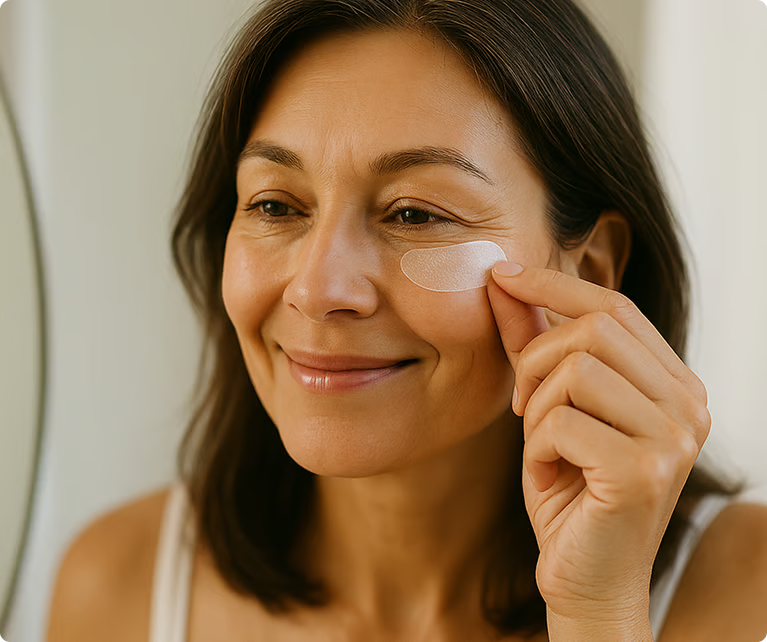 Ao aplicar abaixo dos olhos, esses micro-cones atravessam suavemente a superfície da pele e se dissolvem nas camadas mais profundas, justamente onde o problema realmente acontece.